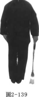 (4) 上;不停,两臂慢慢向下落至左右两 侧满手心皆朝后,目平视前方( 2 - 138)。