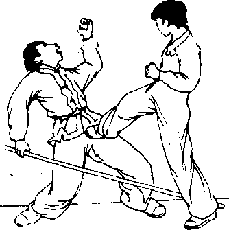 打我头部。我左脚向左前方 上步,侧身闪防,避过对方 攻击;随即用右腿向前弹踢 对方裆部。接着,右脚落地, 身体右转90度,左拳随转身 之势,猛力向前击打对方右 太阳穴处(图8-255. 8-256、 8-257)。打我头部。我左脚向左前方 上步,侧身闪防,避过对方 攻击;随即用右腿向前弹踢 对方裆部。接着,右脚落地, 身体右转90度,左拳随转身 之势,猛力向前击打对方右 太阳穴处(图8-255. 8-256、 8-257)。图 8-256图 8-256