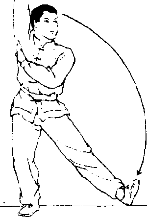 练习方法:面向木柱大树、电线杆等物体,一腿屈膝下蹲; 另一腿伸直,以脚全掌贴靠木柱或大 树的下端.两手搂抱住木柱或树干,使 原下蹲腿逐渐伸直。同时,借助两肋 之力,使上体向木柱或大树逐渐整近.