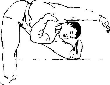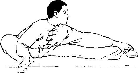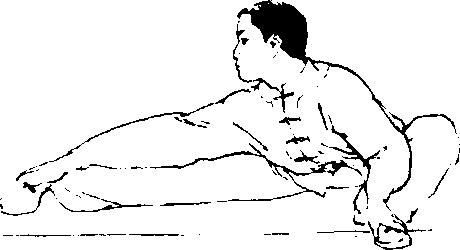 动作要求:两腿必须伸直,要挺胸、直背、开翻;搁腿的 高度可逐步上升.下压时间可逐渐延长,振压幅度可逐渐加大, 并尽量使头部靠近被压腿的脚尖。