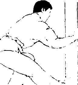 练习方法;背对桌、凳、窗台、台阶、肋木等一定高度的 可支撑物体,两手叉腰或扶持同伴肩背。一腿伸直支撑身体重