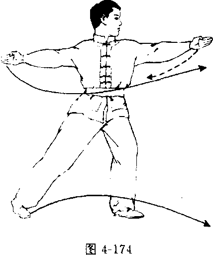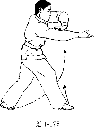 图 4-173图 4-173抬?使左掌扶于右上臂内侧,目视前方(图4-175)o上动不停,