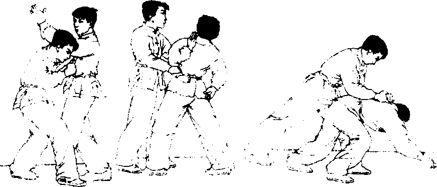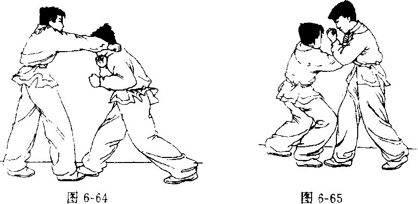图 6-68图 6-68动作要求:搂手要准确,上步要快速,推颌要有力,并和 别腿、拉手动作协调配合。