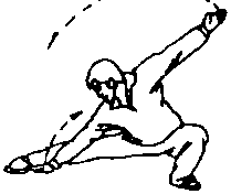 左脚外摆,右脚内扣,步法加快、上体微左倾。