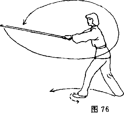 抡经头上方时;抬头;目随棍行(图76)o