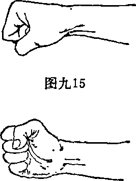 背腕(图九16)和手腕(图九17)四个部分。腕部主要用于防守格挡。