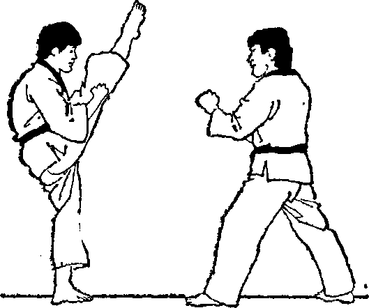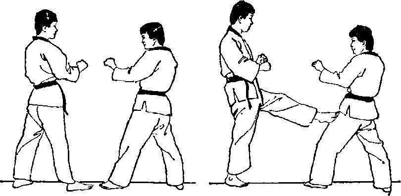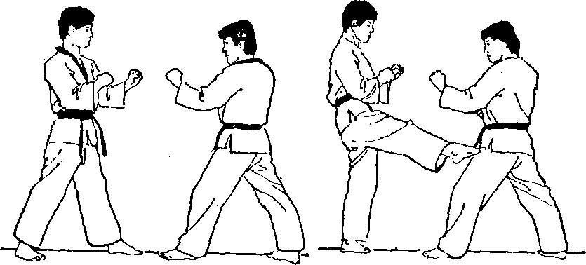1面对目标两脚前后开立右脚在前两手握拳做好准备姿势(图九70)