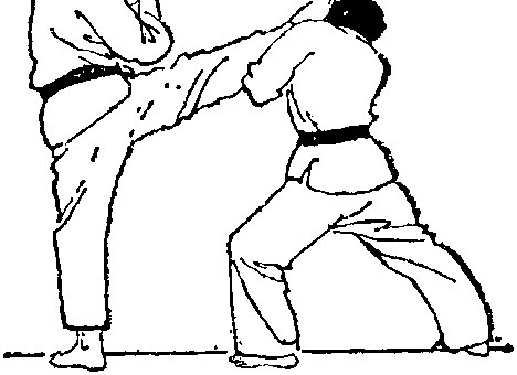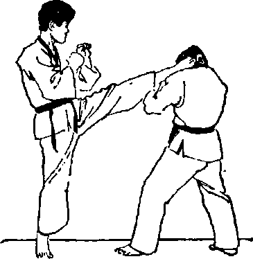 3当脚摆至头上方后突莪变向用足跟或足底下砸对方的头部或颈部(图九76)。