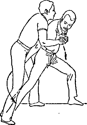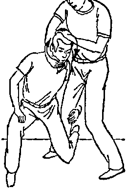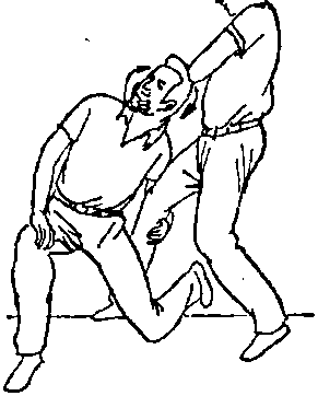 要求抓手、坐臀要迅速转腕要凶狠要求抓手、坐臀要迅速转腕要凶狠14腿被抱(由前)动作当对手由前抱住你右腿欲将你摔倒时(图二69),你迅速用右手扒住对手下须左手则扒其后脑(图二70),随即身体右转两手猛力向右后猛转其头迫其至损就擒(图二71)要求扒须要准确扭头要坚决。14腿被抱(由前)动作当对手由前抱住你右腿欲将你摔倒时(图二69),你迅速用右手扒住对手下须左手则扒其后脑(图二70),随即身体右转两手猛力向右后猛转其头迫其至损就擒(图二71)要求扒须要准确扭头要坚决。图二69图二69