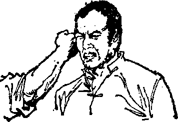 前手应在不泄露意图的情况下直接使用翻背拳翻背拳可以打击面部的任何部位其中太阳穴是最理想的目标(图四10),但此拳法易伤人。