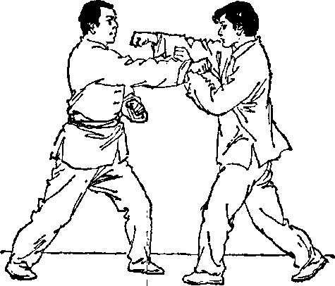 当对手以右拳进攻时我则以左手由上向下做内侧低位格挡拦截随之又由格挡转用搂手或刁手技法。差不