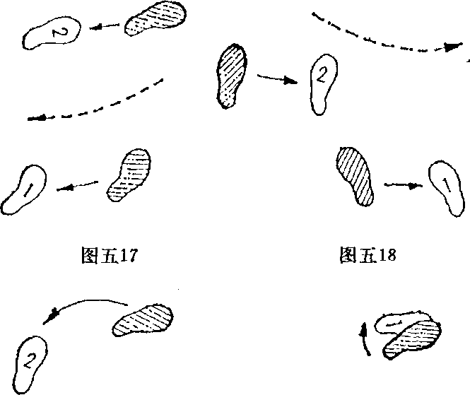 右斜进步——其动作的方法与向左斜进步相同只是方向的不同而己(图五16)完成动作后使自己处于对手的左侧方。