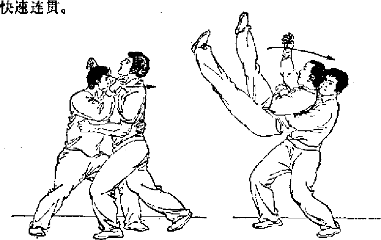 中失去平衡图-49)要求手倒身,勾脚,割腮快速连贯。