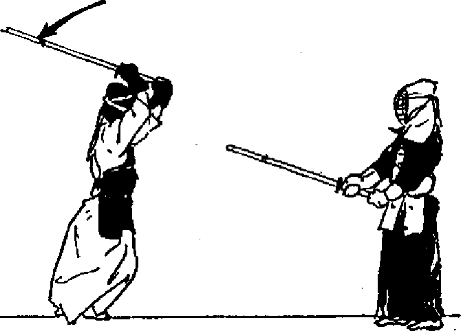 1正面击刺(跨步)举剑于头顶时上体向石侧斜向前劈击时右脚向前跨出一大步用剑身前13处攻击对方头部(图八30、3132)