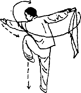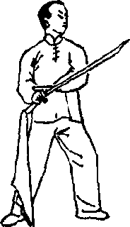 (一)接上动,右手持刀向外翻腕,做剪腕花一周,平 摆至胸前;同时,左脚向前方上步;右脚尖点地:左掌附于 右腕处;目视刀尖(图37①)。(二)上动未停,左手向左上穿掌,掌心向上,臂伸直, 右手持刀平置于胸前,右肘微屈?同时,左腿提膝过腰,挺 胸塌腰,目视左掌(图37②)。尽37①尽37①图37电图37电尽37①尽37①图37电图37电要点:上右步与剪腕花同时完成,穿掌和提膝同时完 成,拉刀有力,有进攻待发之势。