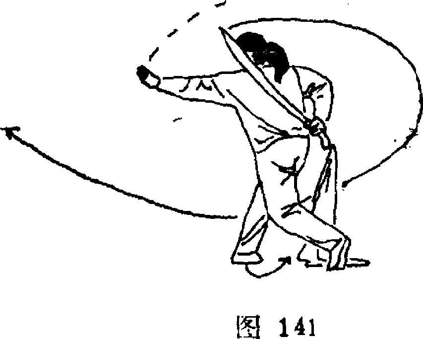 向左摆出,臂伸直,掌指向前;目视左前方(图141).