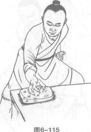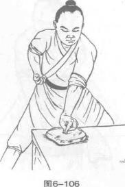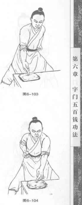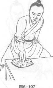 12 金枪手点击砂袋力在食指尖。(图6-103、图6-104)图6-10217锄头手砍击砂袋力在掌棱及拇指尖。(图图6-112)6-1106-1116-11218振掌手震击砂袋力在五指尖及掌根部。(图6-113、图6-114)19哪吒手抓击砂袋力在五指尖。(图6-115、图6-116)图6-114图6-116