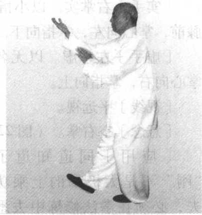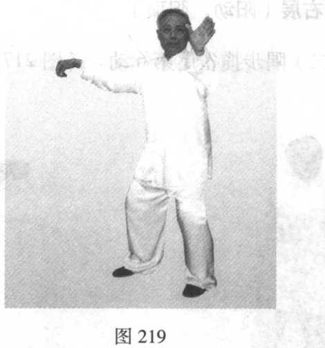 〔意念〕空右掌。(图221) 〔应用〕同道知道了 “刚”不是太极拳的上乘功 夫,必须在拳法修炼中去悉 心体验。