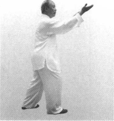 〔虚脚〕左腿松减力,渐变转为右隅位虚腿,虚净勿强直。