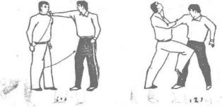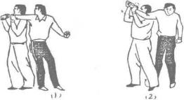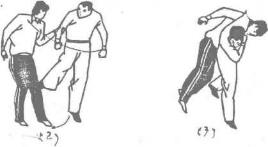 同时右腿提起以膝部猛击对方下身锁喉即可解脱(图