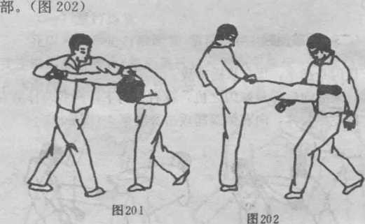臂外侧向右猛力撞击敌右肘关节使其肘关节挫伤。(图204)