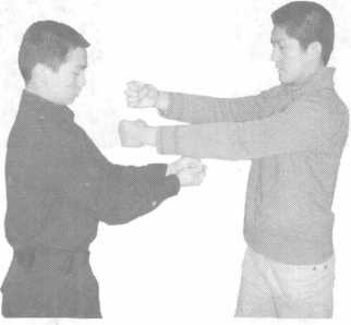 双手腕被对方双手反抓握双臂外旋下按同时拍打对方手腕即可解脱。(图3-5-8123)