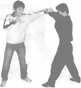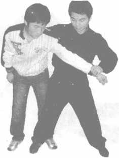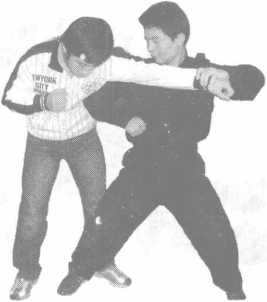 要点顶肘后收身以便右手反击别摔侵害方于体前。