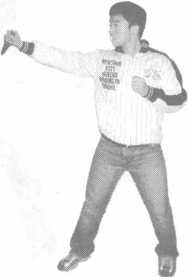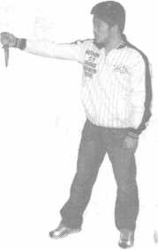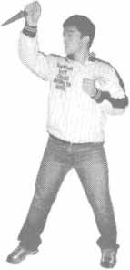 右手正握匕首向前上右步作用用于刺对方头部、颈部
