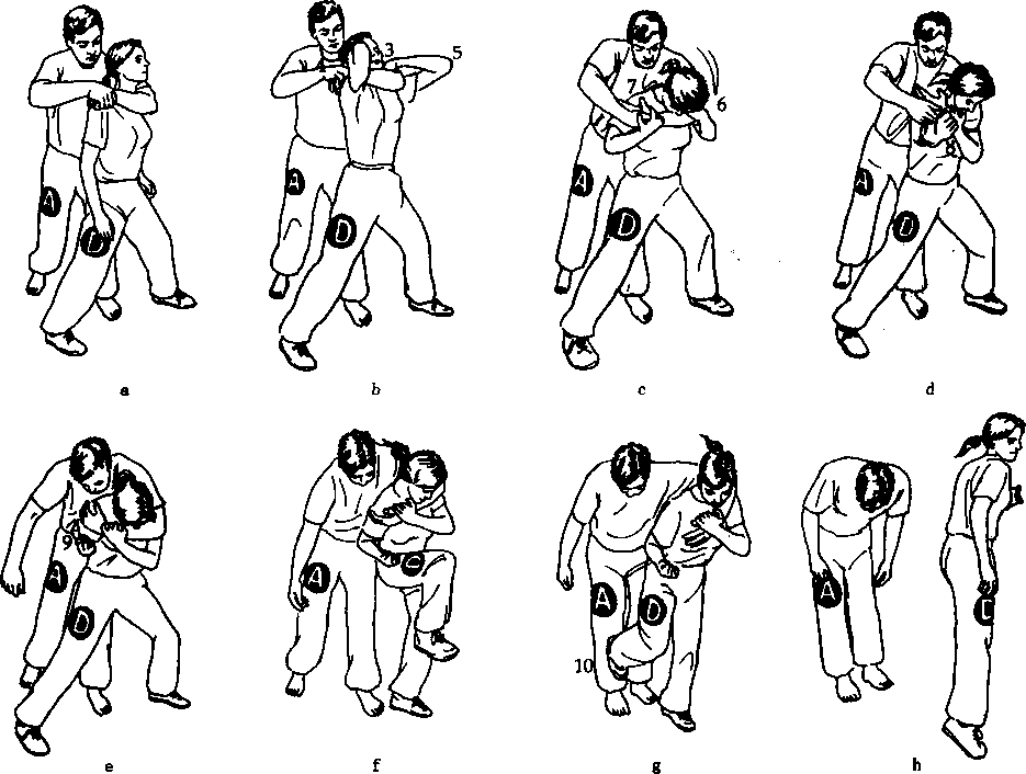 注意防守者通常比较敏感他能感觉到对方从后方逐渐接近。甚至在两人接触之前就采取防守措施。同时,他们将下巴朝下缩拢以防攻击者再次扼住喉咙另一种选择就是下巴靠近攻击者的肘部以保护气管所在部位减少喉咙所受的压力。