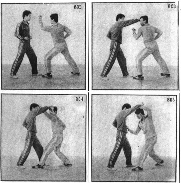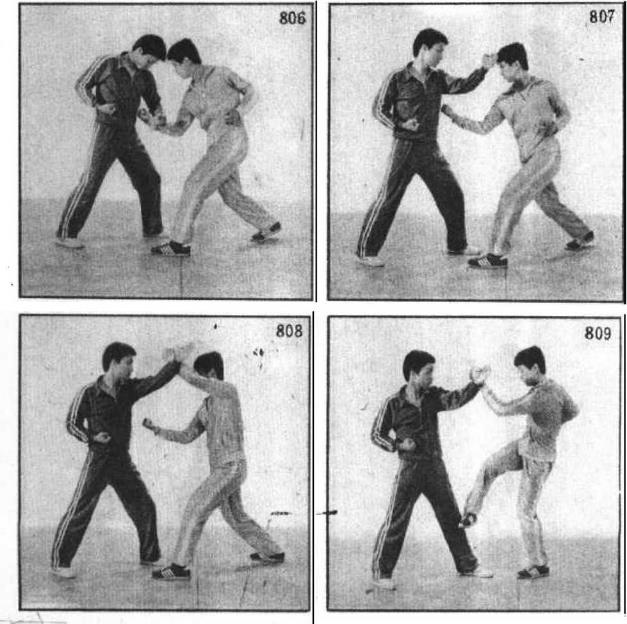 2 左臂上举左手反掌向上打甲右太阳穴(图807)。