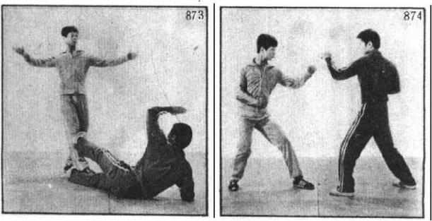 (+八)甲、乙站立互成格斗姿势(图874)。