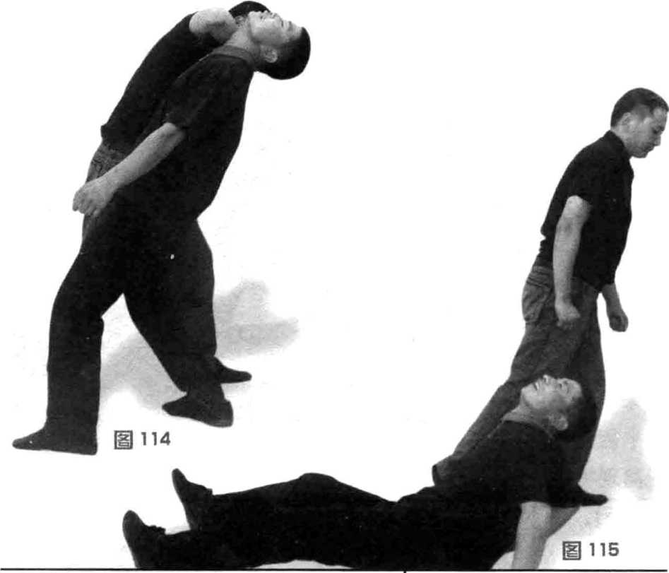 用头部猛烈撞击歹徒头部在歹徒受到撞击发懵之时我再扭转歹徒的头部将其摔倒在地(104?图107)