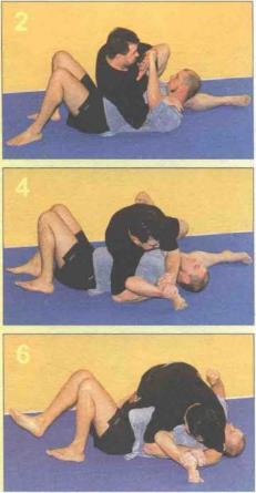 4 然后右腿放在的右前臂上并运用屈臂锁(-,)。在这个位置上多次击打的头部。