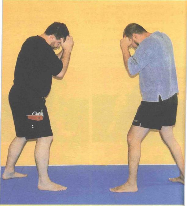 3 用左前臂挡住这一拳并向下推的右臂。