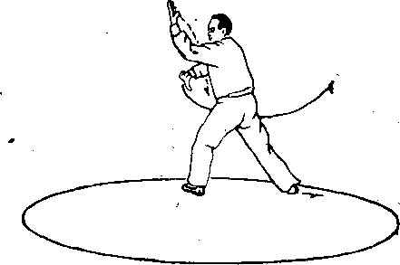 左足向西边半步,上身前移,左掌同时从背后向身前屈 肘上举,掌心向里,掌指向上;右掌随之从上屈肘向胸前下 按,拇指外侧向里;眼看左掌(图110)。要点:与第四掌第十二式走马活挟同,唯方向相反。