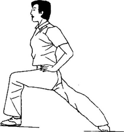 刚开始练习时可用身体的起伏来帮助逐步适应。练到一 定程度后上身可尽量向左脚俯靠。右边亦然。