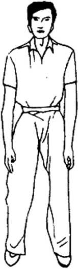 两脚分开与肩同宽站立,双腿伸直,双手自然下垂,目视 正前方(图56)。