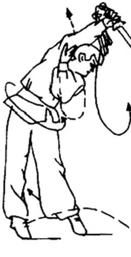 如图2 -129所示,身体猛向右后上方拧转,左脚骤然向